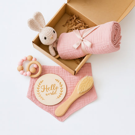Ljubek in premišljeno sestavljen darilni komplet z motivom zajčka, ki razveseli tako dojenčka kot starše. Vključuje vse najnujnejše in uporabne izdelke v nežnem, estetskem pakiranju – pripravljen za podarjanje ob rojstvu, baby showerju ali prvem obisku.