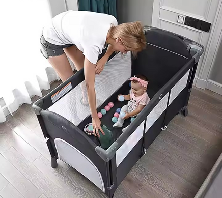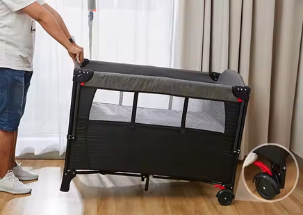 Idealna rešitev za starše, ki potrebujejo zanesljivo, prostorsko varčno in mobilno posteljico ali stajico za svojega malčka.