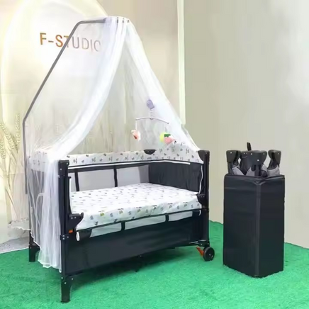 Prenosna otroška posteljica–stajica 2v1 z zadrgo, pajčolanom in torbo