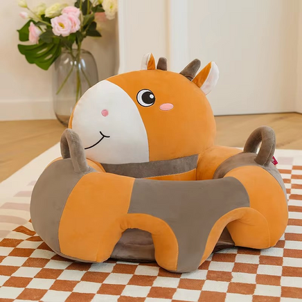 Mehka in varna opora za prve korake v samostojno sedenje! Stolček v prikupni obliki kravica nudi udoben sedež, hkrati pa podpira otroka pri razvoju stabilnosti in ravnotežja.